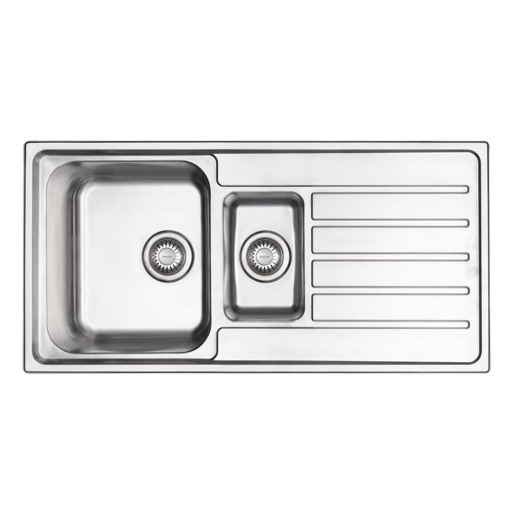 The UBD3517.41 comes standard with a plate style designer overflow and premium basket waste. The Urban bowl & 1/2 with drainer is reversible and has an easy clean unobtrusive laser edge.
