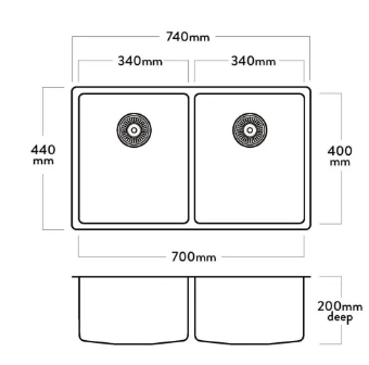 The Pressato PR300 Double Bowl has a 15mm corner radius and comes standard with two 90mm round basket wastes, sound deadening pads and 15l/m overflows.