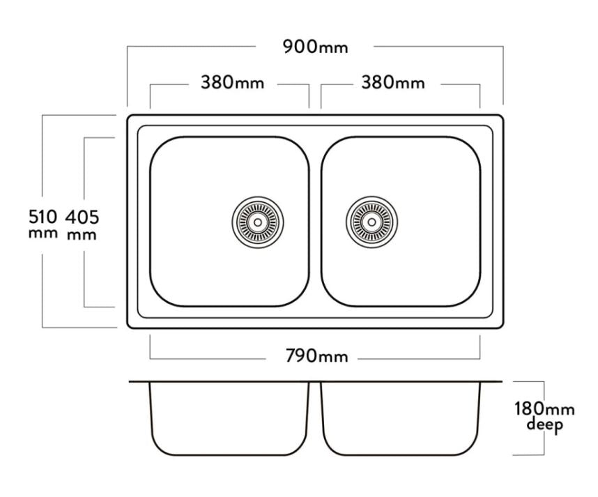 The EW203 double bowl is reversible and has an easy clean unobtrusive laser edge. It also comes standard with a 90mm round basket waste and a main bowl overflow.