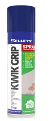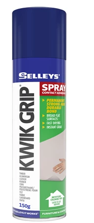 Selleys Kwik Grip® Spray is a clear fast drying, spray adhesive that forms an instant bond on contact