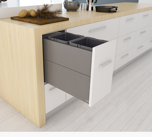 Tanova NZ Designer 2 Pull Out Soft Close Kitchen Bin - 300mm ,350mm ,400mm & 450mm Cabinet - 1 x 20Litre ,2 x 10Litre ,2 x 12Litre & 2 x 15Litre - White and Grey Charcoal