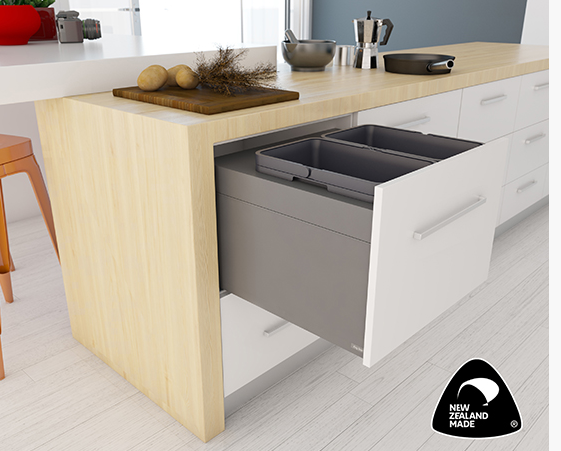Tanova NZ Designer 2 Pull Out Soft Close Kitchen Bin Push To Open - 300mm ,350mm,400mm ,450mm ,600mm & 700mm Cabinet - 1 x 20Litre ,2 x 10Litre ,2 x 20Litre & 2 x 36Litre - White and Grey Charcoal