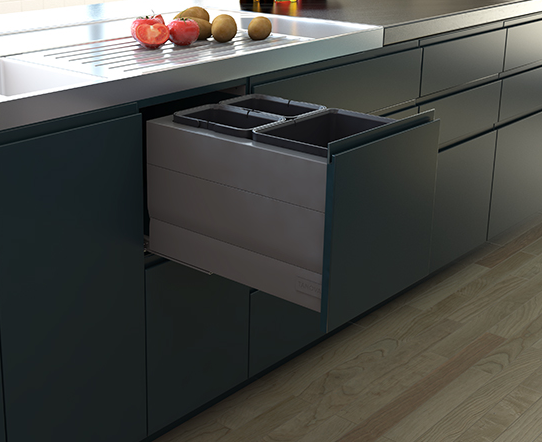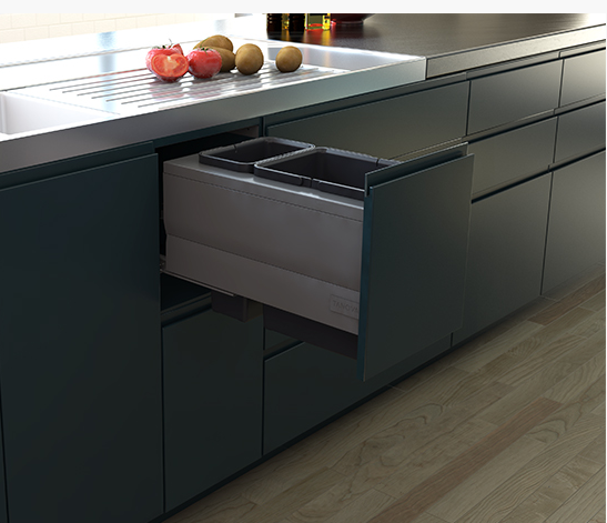 Tanova NZ Designer Soft Close Kitchen Bin -350mm, 400mm,450mm, 600mm ,Cabinet - 1 x 24L and 1 x 8Litre ,1 x 18L and 1 x 8Litre ,1 x 15L and 1 x 6Litre , 1 x 15L 2 x 6Litre ,1 x 18L and 2 x 8Litre & 1 x 36L and 1 x 20Litre – Grey