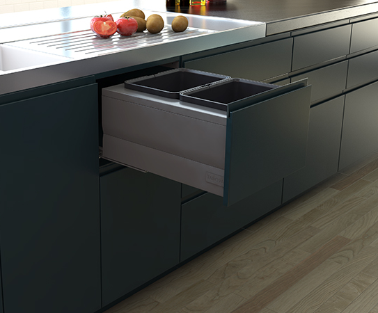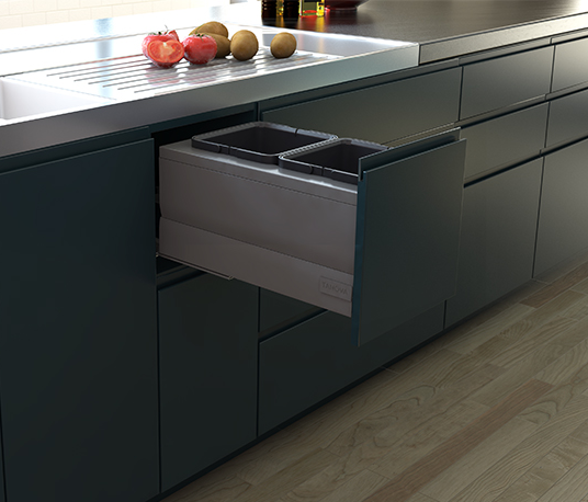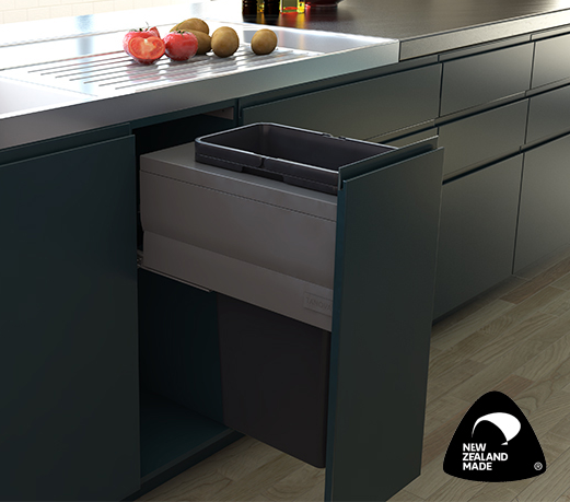 Designer Series pull out soft close kitchen waste bin option for your 350mm, 400mm,450mm cabinet.