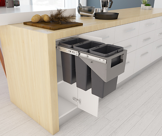 Tanova NZ Simplex Pull Out Soft Close Kitchen Bin - Width 200mm ,300mm ,350mm and 400mm ,Behind Door Handle type Cabinet - 1 x 50Litre ,2 x 8Litre , 2 x 10Litre ,2 x 12Litre ,2 x 15Litre ,2 x 18Litre ,1 x 24Litre & 3 x 8Litre