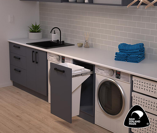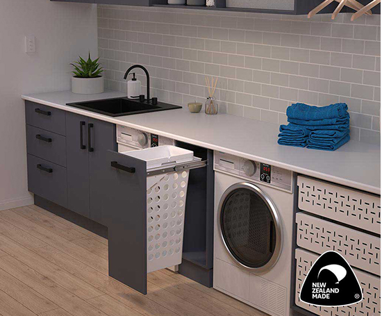 Simplex pull out soft close laundry basket option for your 300mm cabinet.