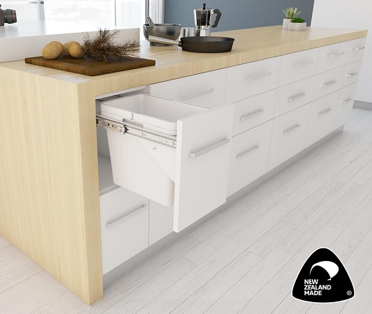 Tanova NZ Simplex Soft Close Kitchen Bin - 300mm ,350mm and 450mm Cabinet Drawer Front Type - 1 x 20Litre ,1 x 36Litre ,2 x 10Litre ,2 x 12Litre ,2 x 15Litre ,2 x 18Litre & 2 x 24Litre White