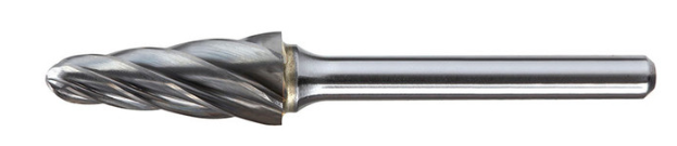 • Sectional fluting enables burrs to cut on the radius as well as the body of the tool