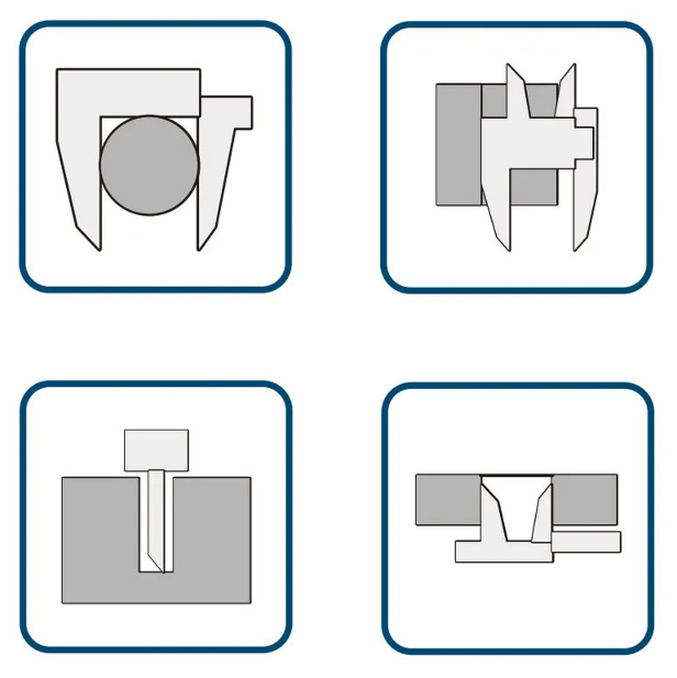 4 usages for measuring outside diameter, inside diameter, step and depth