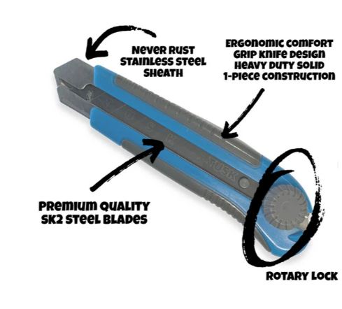 Tusk Heavy Duty Snap off Knife & Blade Rotary-Lock 25mm - 1pc pack & 10pc pack