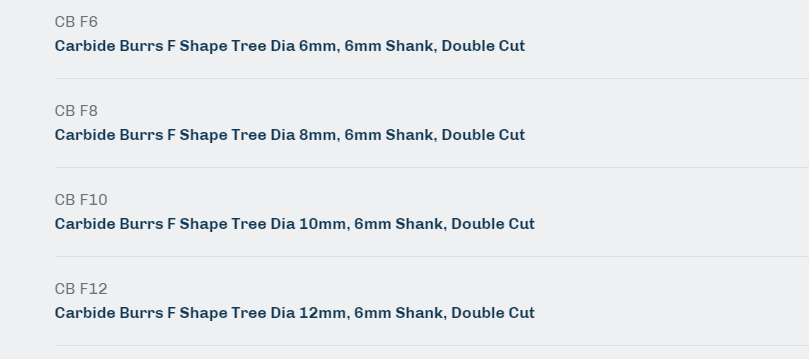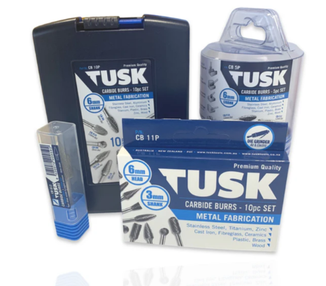 Tusk Heavy Duty Carbide Burrs L & M Shape 6mm Shank Double Cut, Cone & Point Cone Dia 6mm ,8mm ,10mm & 12mm
