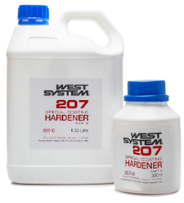 West Systems 207 Special Clear Hardener was developed for coating and fibreglass cloth application where an exceptionally clear, moisture-resistant, natural wood finish is desired.